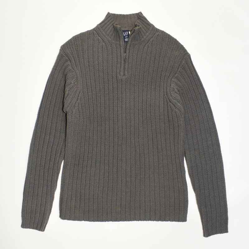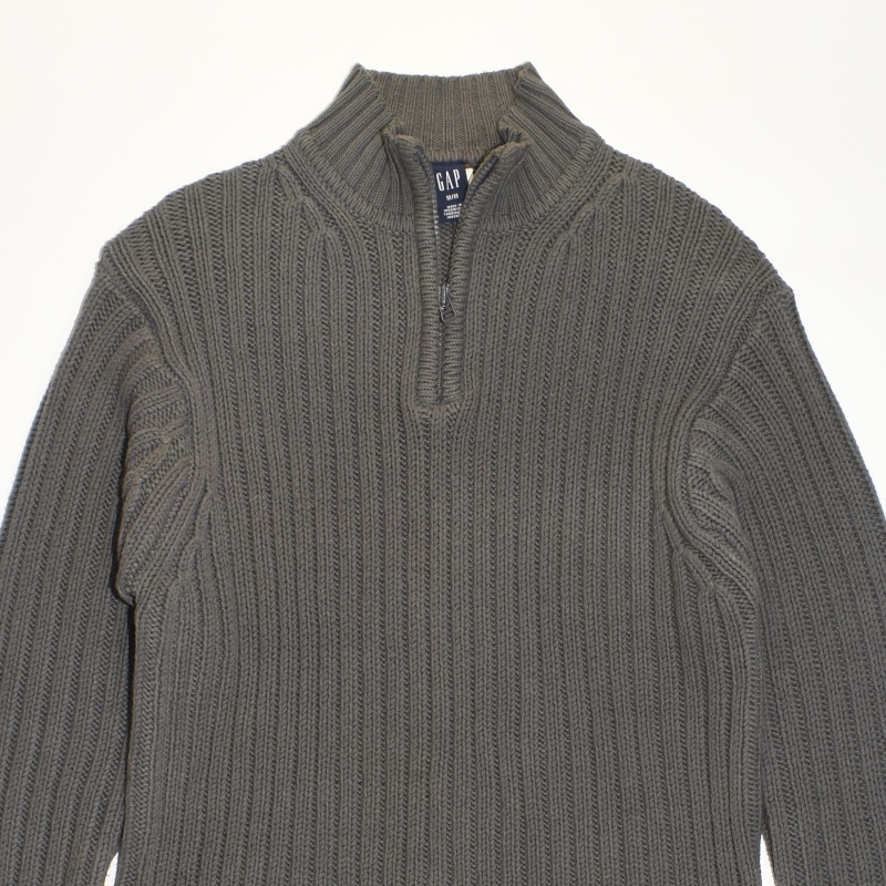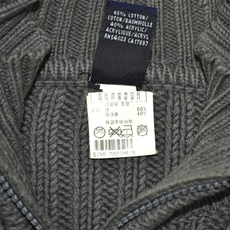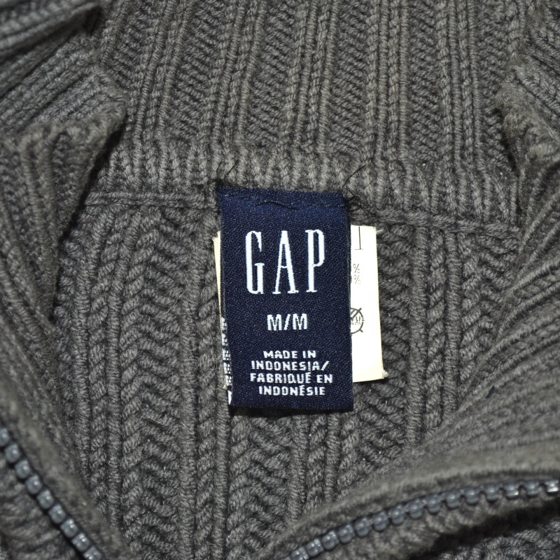 2122.갭GAP 반집업 꽈배기 니트티셔츠/정품/남성 M색상: 다크그레이소재: 면60%,아크릴40%라벨사이즈: M실측(cm) - 어깨: 50cm, 가슴반품: 57cm, 총기장: 72cm, 소매길이: 70cm