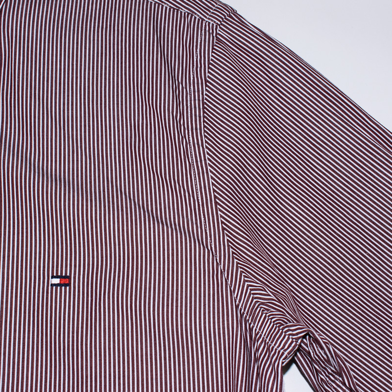 1817.타미힐피거 스트라이프 긴팔남방셔츠/정품/남성색상: 퍼플 스트라이프소재: 면100%라벨사이즈: M실측(cm) - 어깨: 42cm, 가슴반품: 51cm, 총기장: 76cm, 소매길이: 65cm