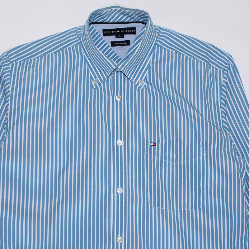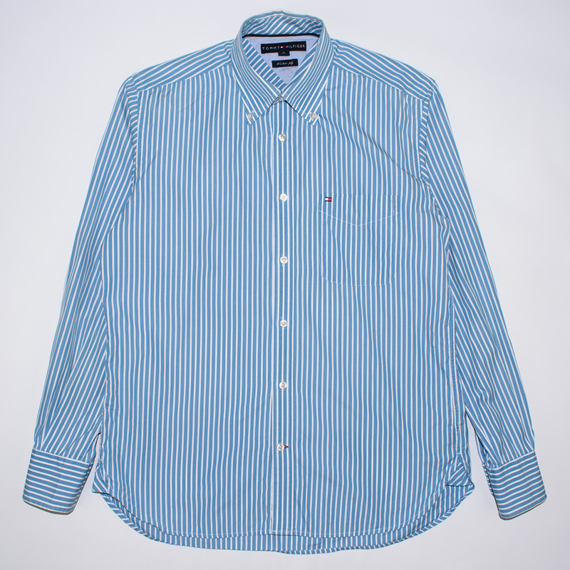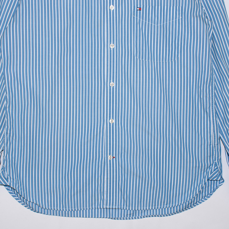 1818.타미힐피거 스트라이프 긴팔남방셔츠/정품/남성색상: 블루 스트라이프소재: 면100%라벨사이즈: M실측(cm) - 어깨: 46cm, 가슴반품: 56cm, 총기장: 78cm, 소매길이: 64cm