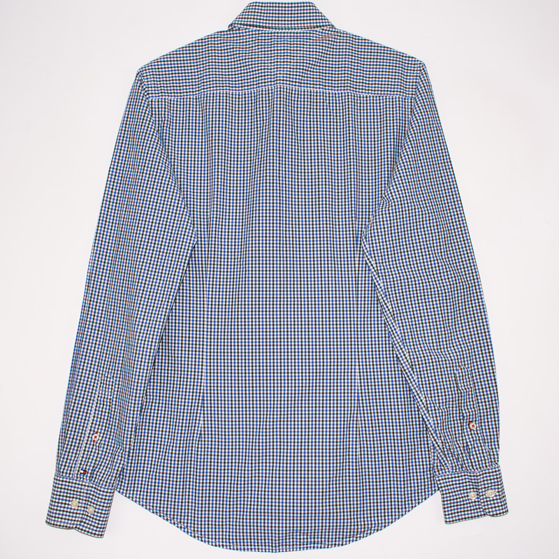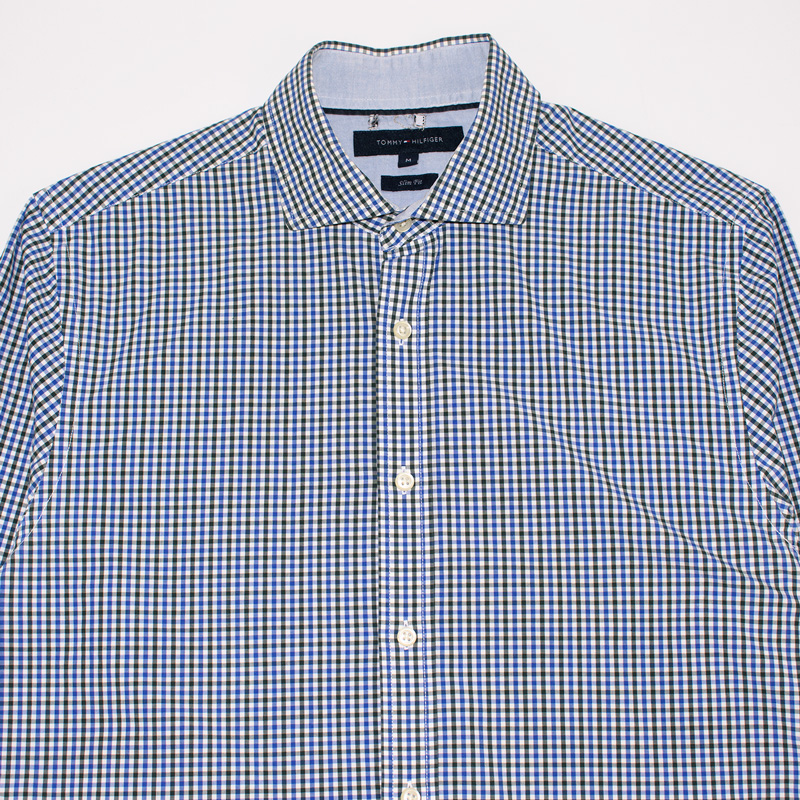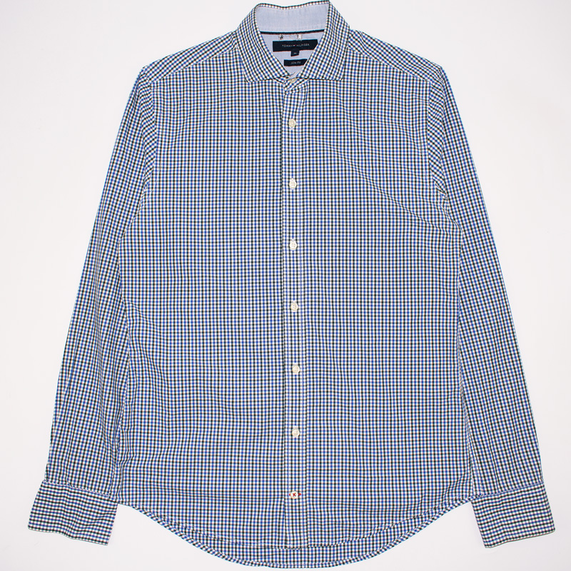2135.타미힐피거 체크패턴 긴팔 남방셔츠/정품/남성 M색상: 블루 체크패턴소재: 면100%라벨사이즈: M실측(cm) - 어깨: 44cm, 가슴반품: 51cm, 총기장: 73cm, 소매길이: 67cm