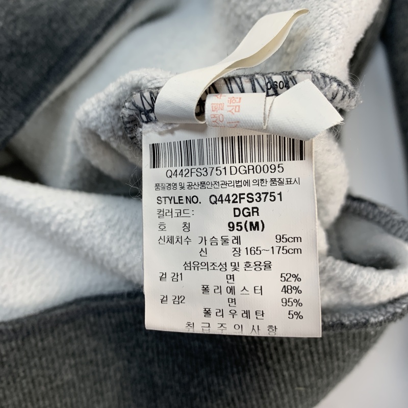 3419.르꼬끄 자수 기모 긴팔 맨투맨티셔츠/정품/남성색상: 다크그레이소재: 겉감1:면52%,폴리에스터48%/ 겉감2:면95%,폴리우레탄5%라벨사이즈: 95실측(cm) - 어깨: 50cm, 가슴반품: 57cm, 총기장: 63cm, 소매길이: 63cm