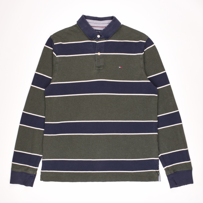 4110.타미힐피거 빈티지자수 긴팔카라티셔츠/정품/남성 M색상: 카키,네이비소재: 면라벨사이즈: M실측(cm) - 어깨: 44cm, 가슴반품: 52cm, 총기장: 71cm, 소매길이: 64cm