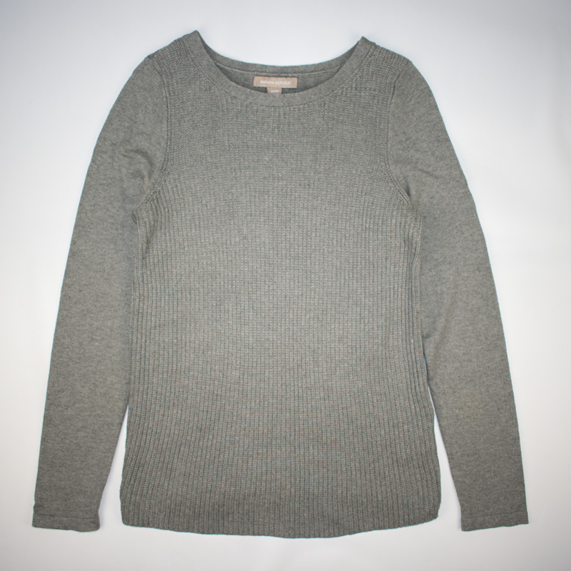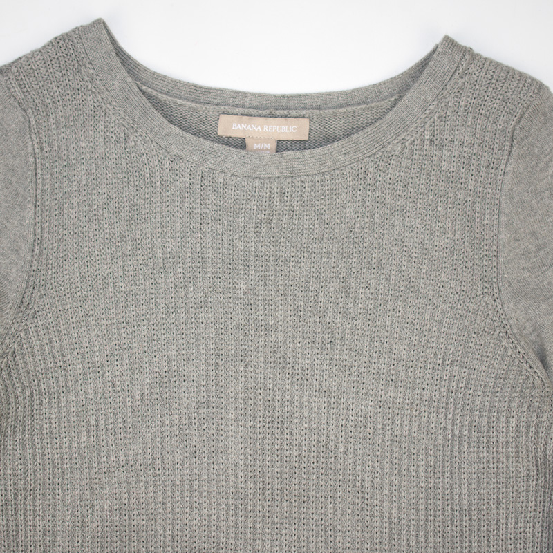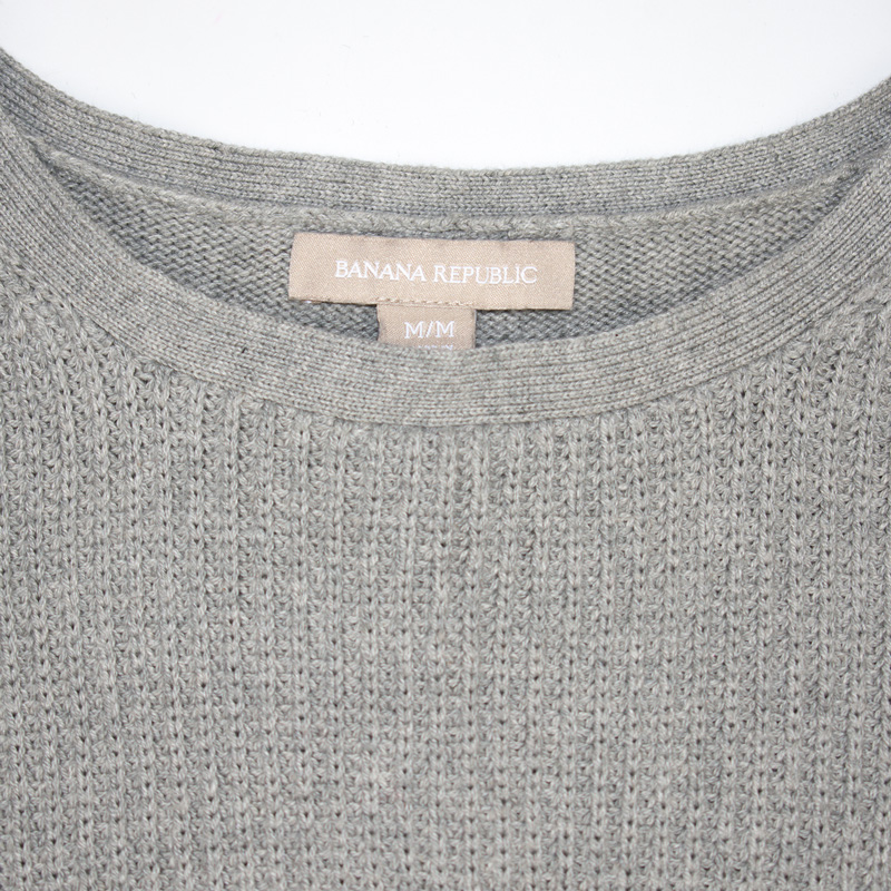 1135.바나나리퍼블릭 캐시미어 니트티셔츠/정품/여성M색상: 그레이소재: 면70%,나일론25%,캐시미어5%라벨사이즈: M실측(cm) - 어깨: 35cm, 가슴반품: 42cm, 총기장: 66cm, 소매길이: 63cm