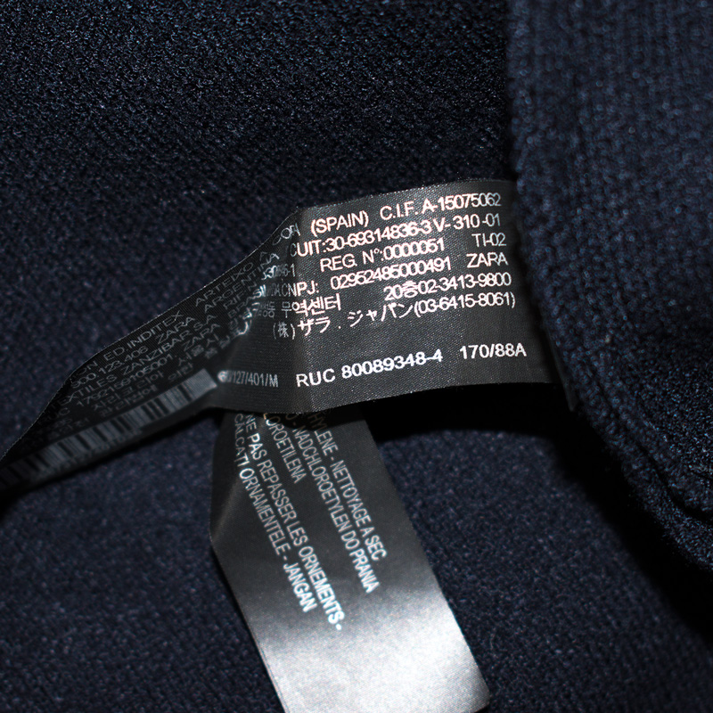 1537.자라니트 인조카라퍼 니트가디건 코트/정품/여성색상: 다크네이비소재: 비스코스70%,폴리에스터30%라벨사이즈: M실측(cm) - 어깨: 44cm, 가슴반품: 56cm, 총기장: 92cm, 소매길이: 40cm중국사이즈:170/88A