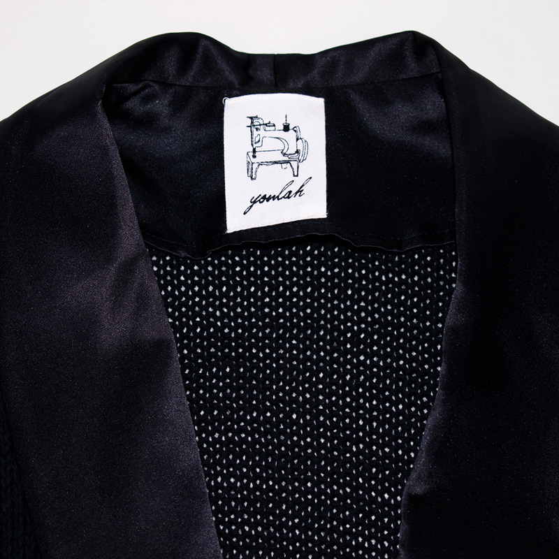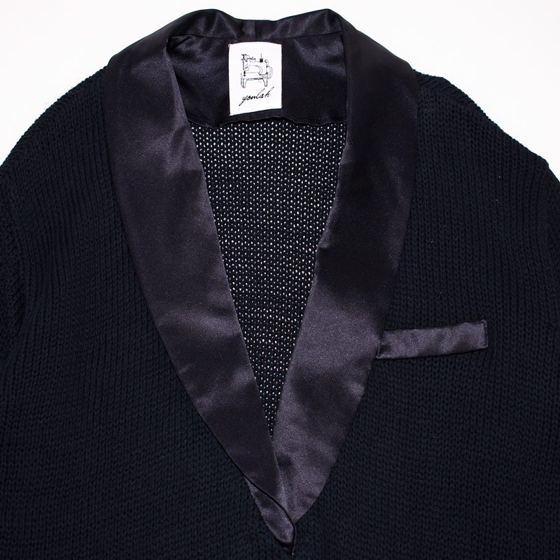 2852.Youlah 카라넥 니트티셔츠 자켓/정품/여성 F색상: 네이비소재: 울,폴리에스터라벨사이즈: F실측(cm) - 어깨: 46cm, 가슴반품: 55cm, 총기장: 70cm, 소매길이: 57cm