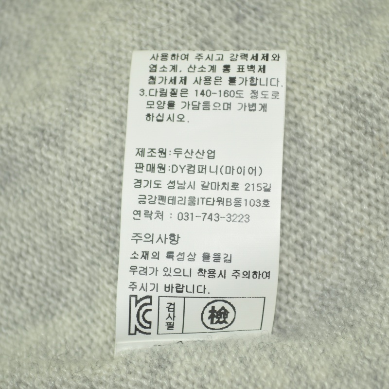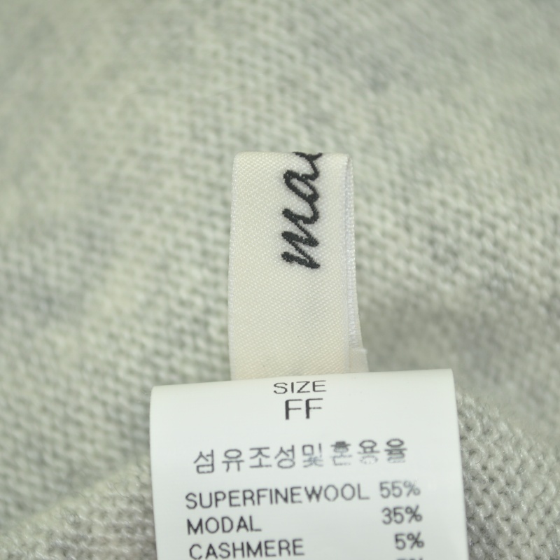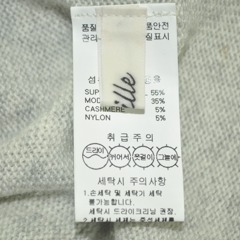 3654.마일르 캐시미어혼방 니트티셔츠/정품/여성 F색상: 라이트그레이소재: 울55%,모달35%,캐시미어5%,나일론5%라벨사이즈: F실측(cm) - 어깨: 42cm, 가슴반품: 66cm, 총기장: 79cm, 소매길이: 78cm