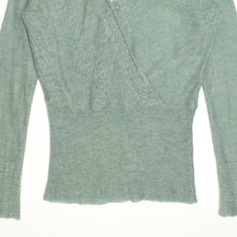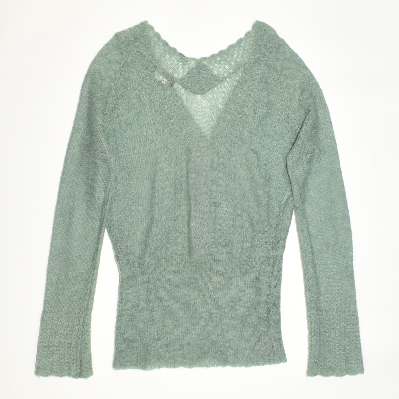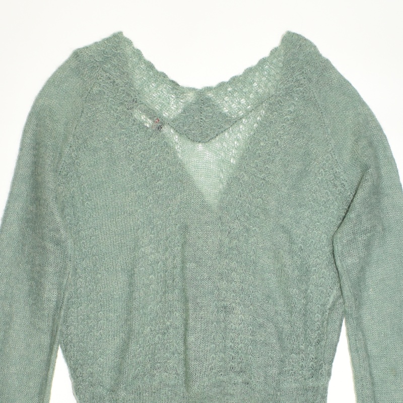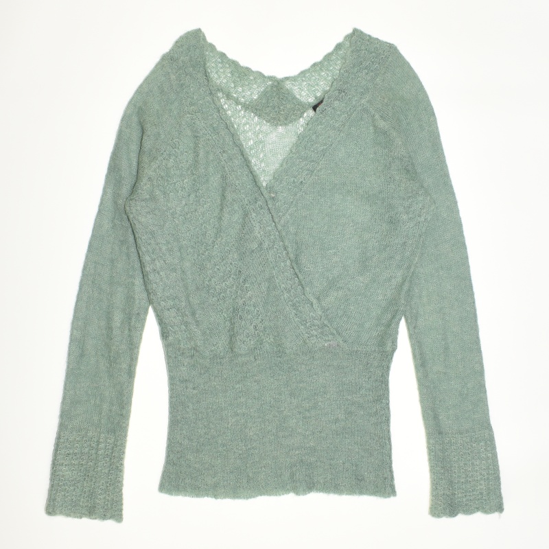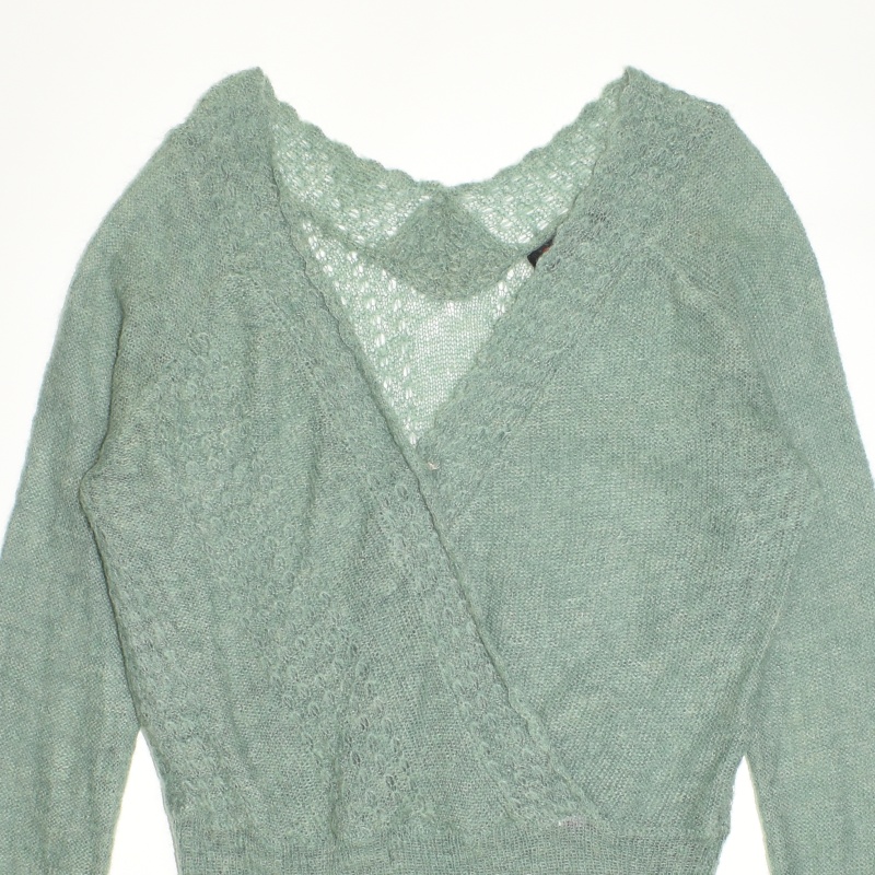 3950.모르간 브이넥 긴팔 니트티셔츠/정품/여성 F색상: 민트그린소재: 울라벨사이즈: F실측(cm) - 어깨: 41cm, 가슴반품: 50cm, 총기장: 70cm, 소매길이: 76cm