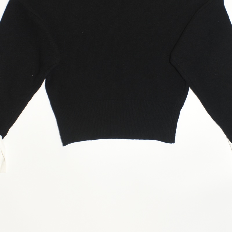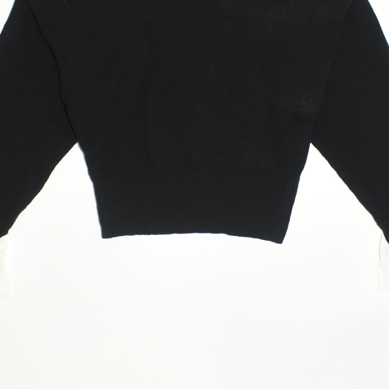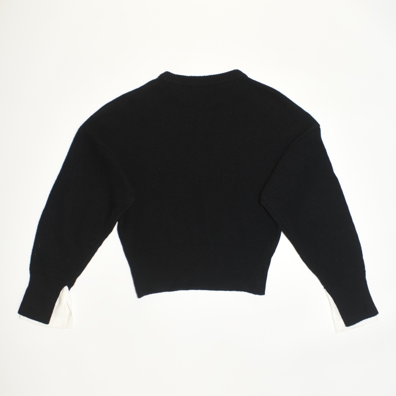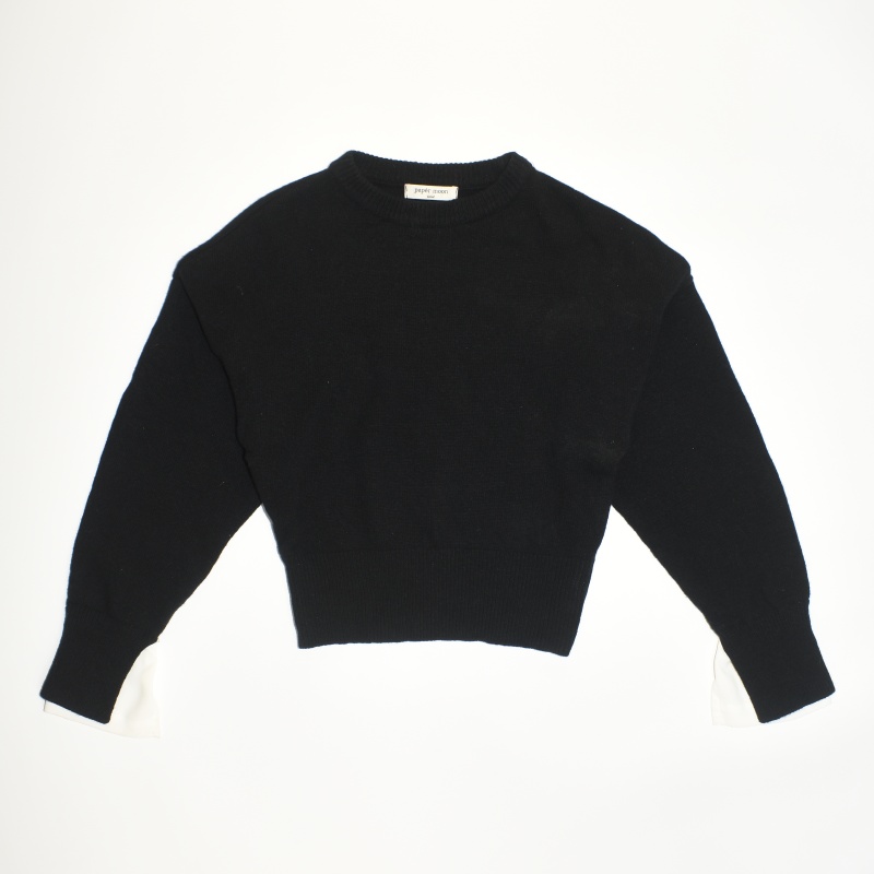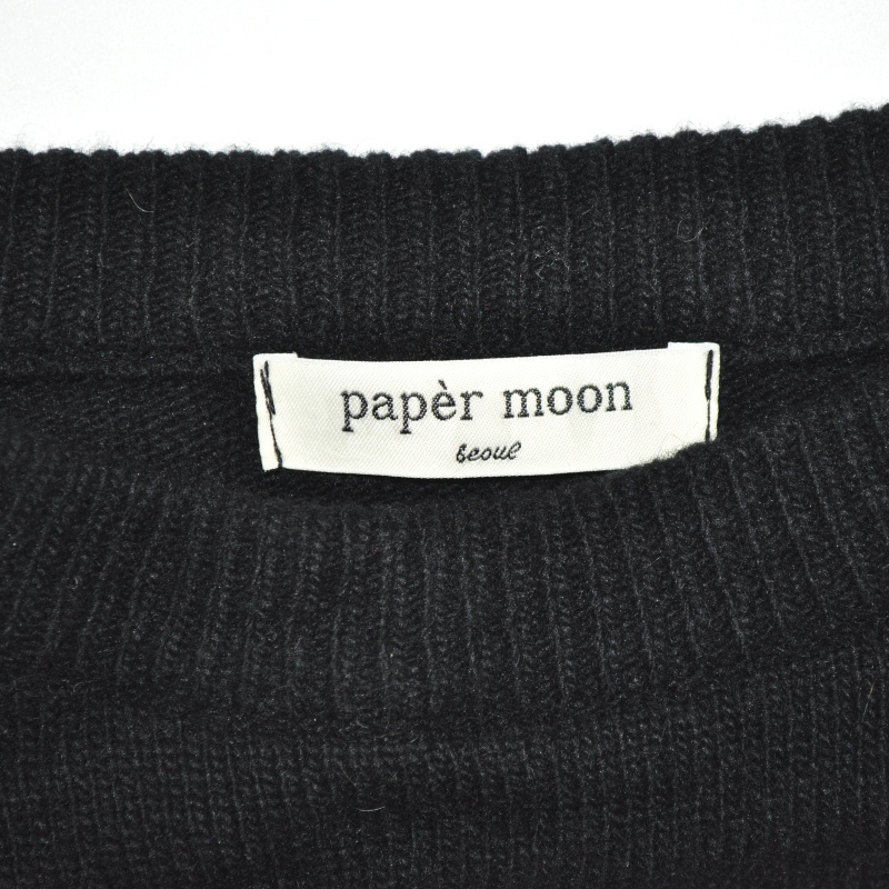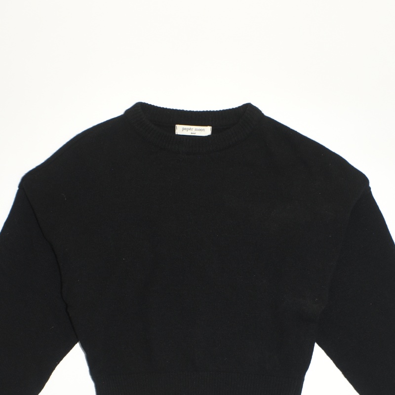 4121.페이퍼문 라운드넥 크롭 니트티셔츠/정품/여성 F색상: 블랙소재: 울라벨사이즈: F실측(cm) - 어깨: 44cm, 가슴반품: 51cm, 총기장: 50cm, 소매길이: 64cm