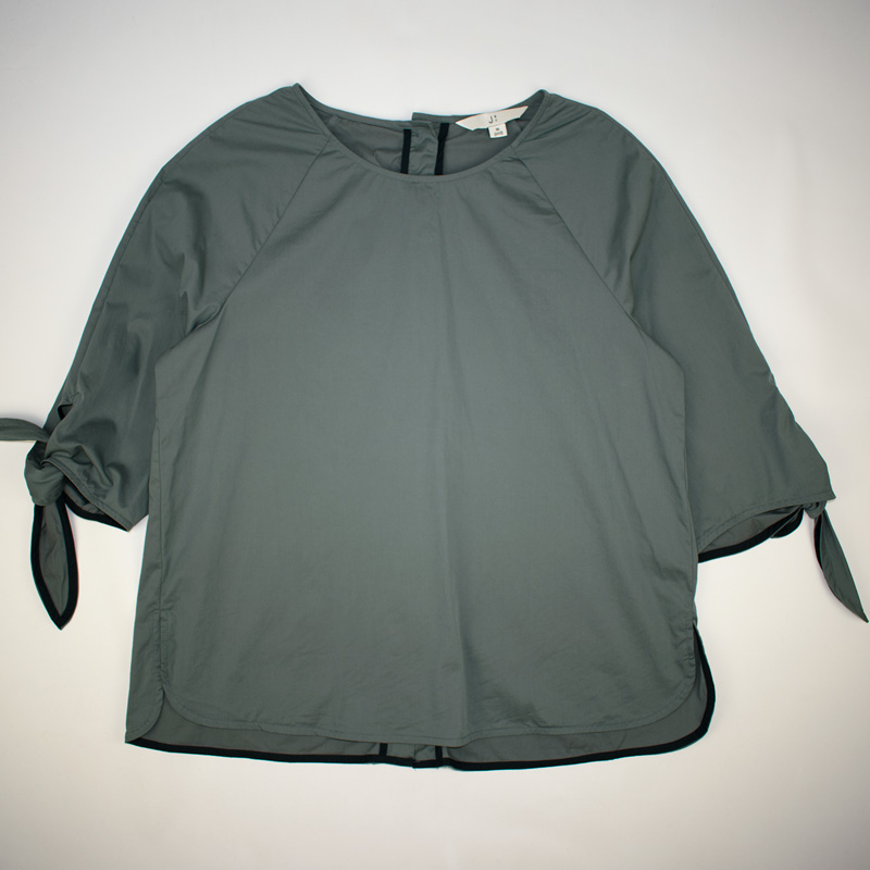1233.제이바이 라운드넥 7부 리본 티셔츠/정품/여성 95색상: 카키소재: 면62%,나일론35%,폴리우레탄3%라벨사이즈: 95실측(cm) - 어깨: 42cm, 가슴반품: 53cm, 총기장: 65cm, 소매길이: 42cm호칭:구77
