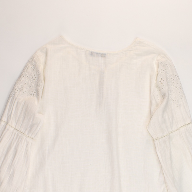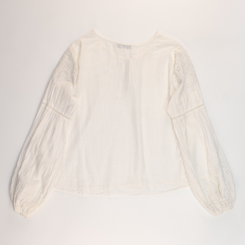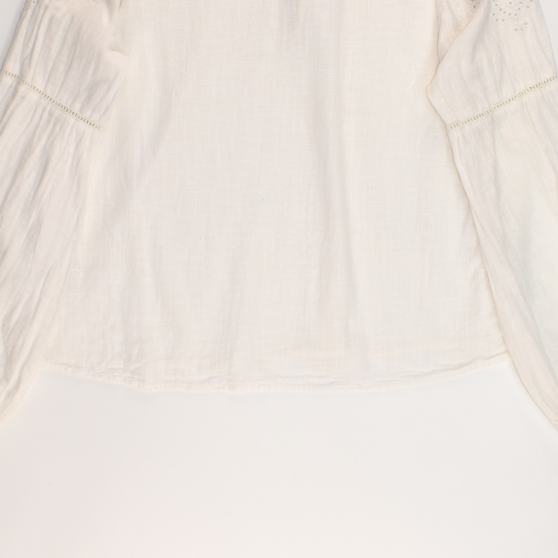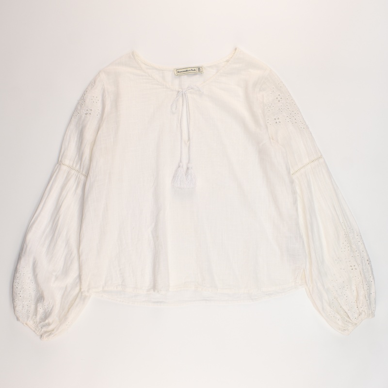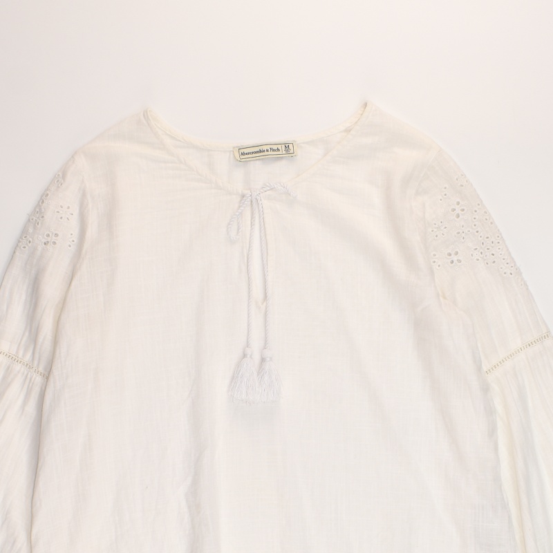 2441.아베크롬비 레이스펀칭 긴팔 블라우스/정품/여성색상: 화이트소재: 면100%라벨사이즈: M실측(cm) - 어깨: 39cm, 가슴반품: 54cm, 총기장: 56cm, 소매길이: 62cm비침있음