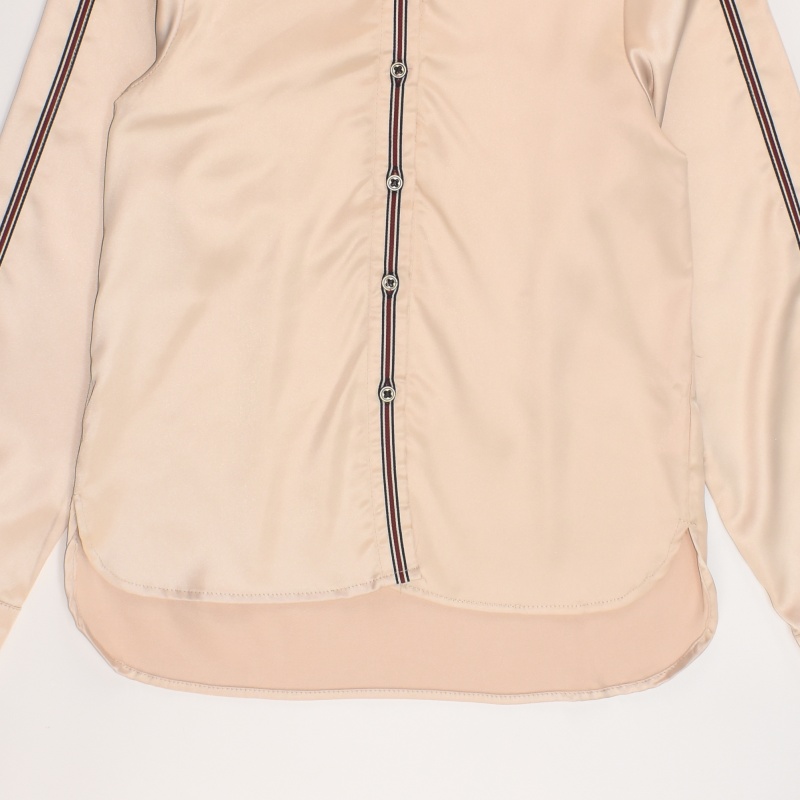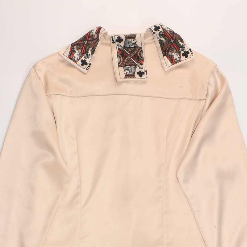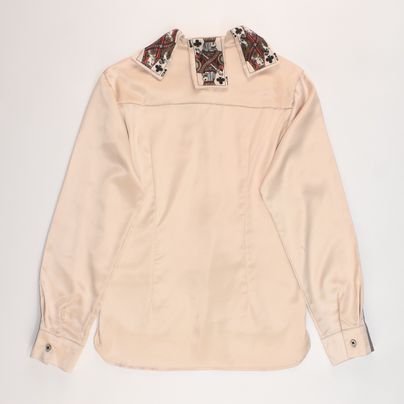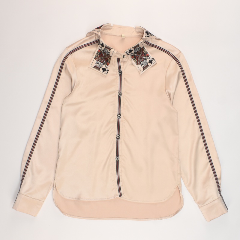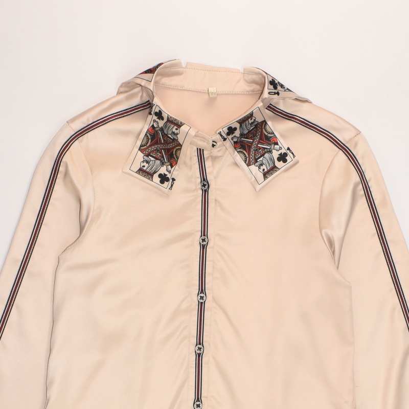 2567.명품 디자인 카드프린트 긴팔남방셔츠 여성 M색상: 연핑크소재: 폴리에스터100%라벨사이즈: M실측(cm) - 어깨: 41cm, 가슴반품: 45cm, 총기장: 65cm, 소매길이: 59cm