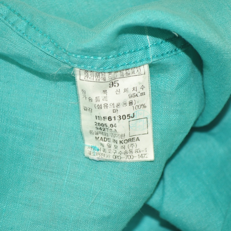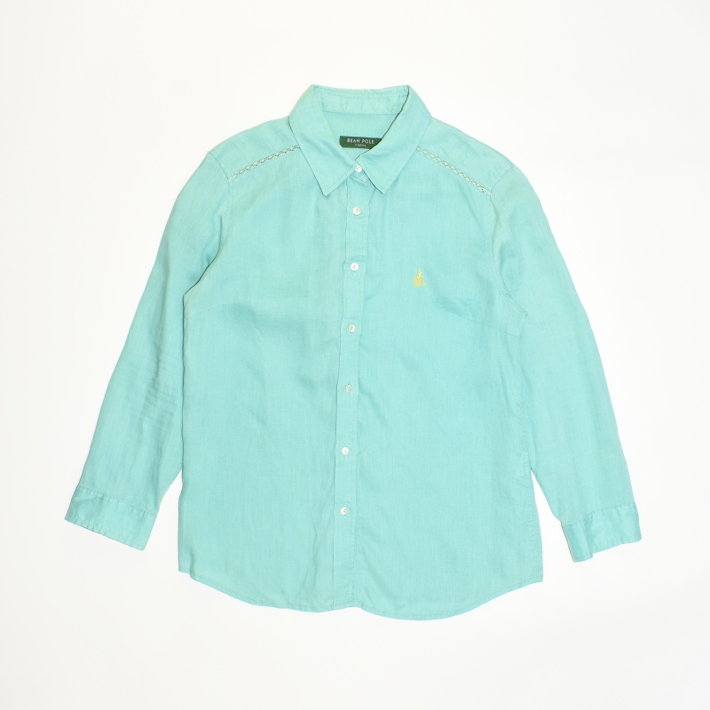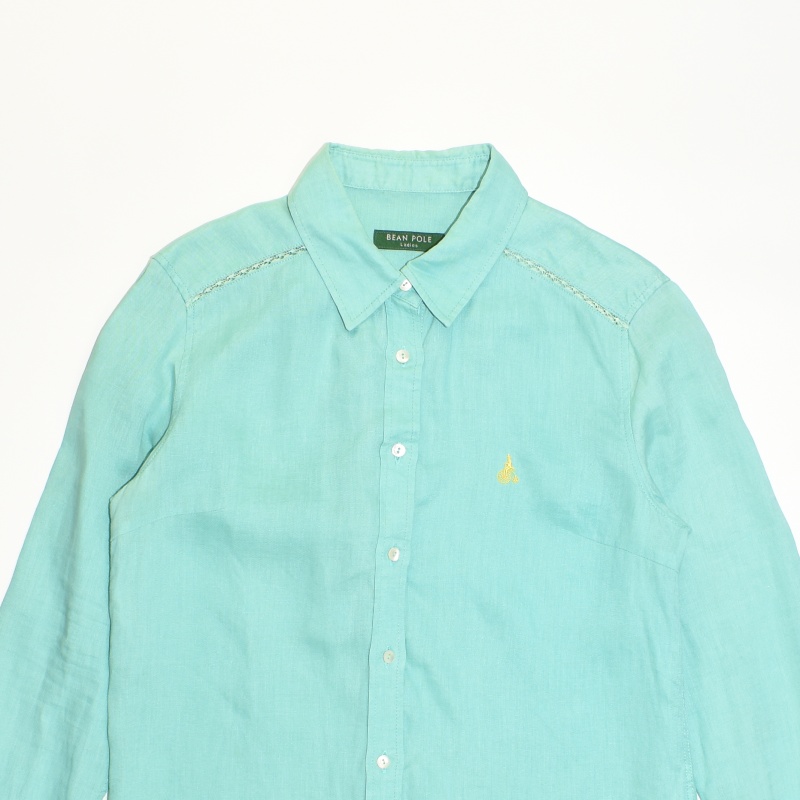 2881.빈폴레이디스 긴팔 린넨100 남방셔츠/정품/여성 95색상: 민트소재: 마100%라벨사이즈: 95실측(cm) - 어깨: 40cm, 가슴반품: 46cm, 총기장: 61cm, 소매길이: 50cm