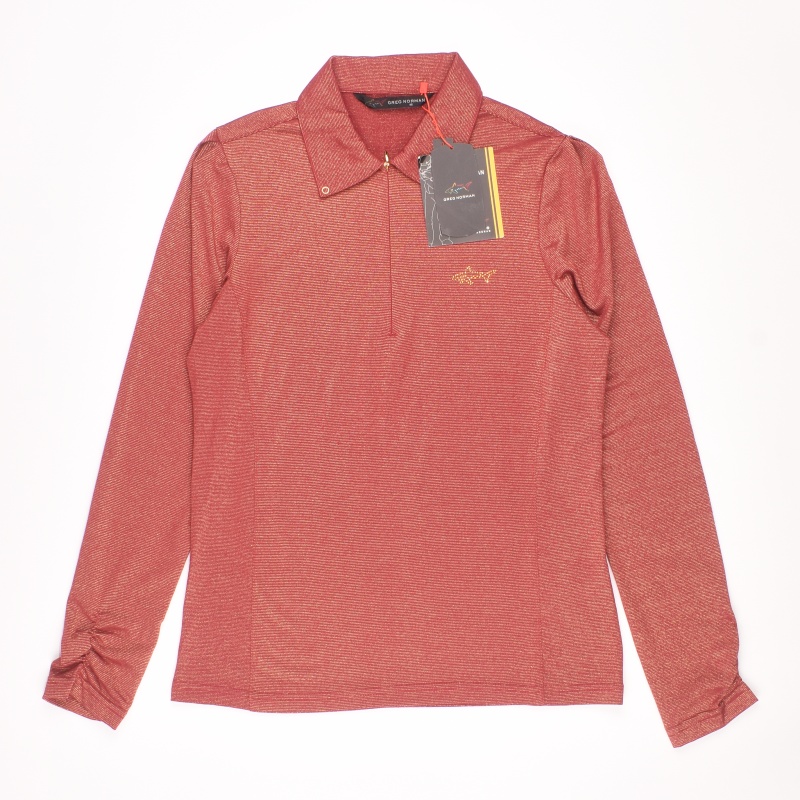 3024.그렉노먼 골프 하프집업 긴팔티셔츠/정품/여성 95색상: 와인소재: 폴리에스터57%,레이온27%,나일론11%,폴리우레탄5%라벨사이즈: 95실측(cm) - 어깨: 37cm, 가슴반품: 45cm, 총기장: 63cm, 소매길이: 61cm